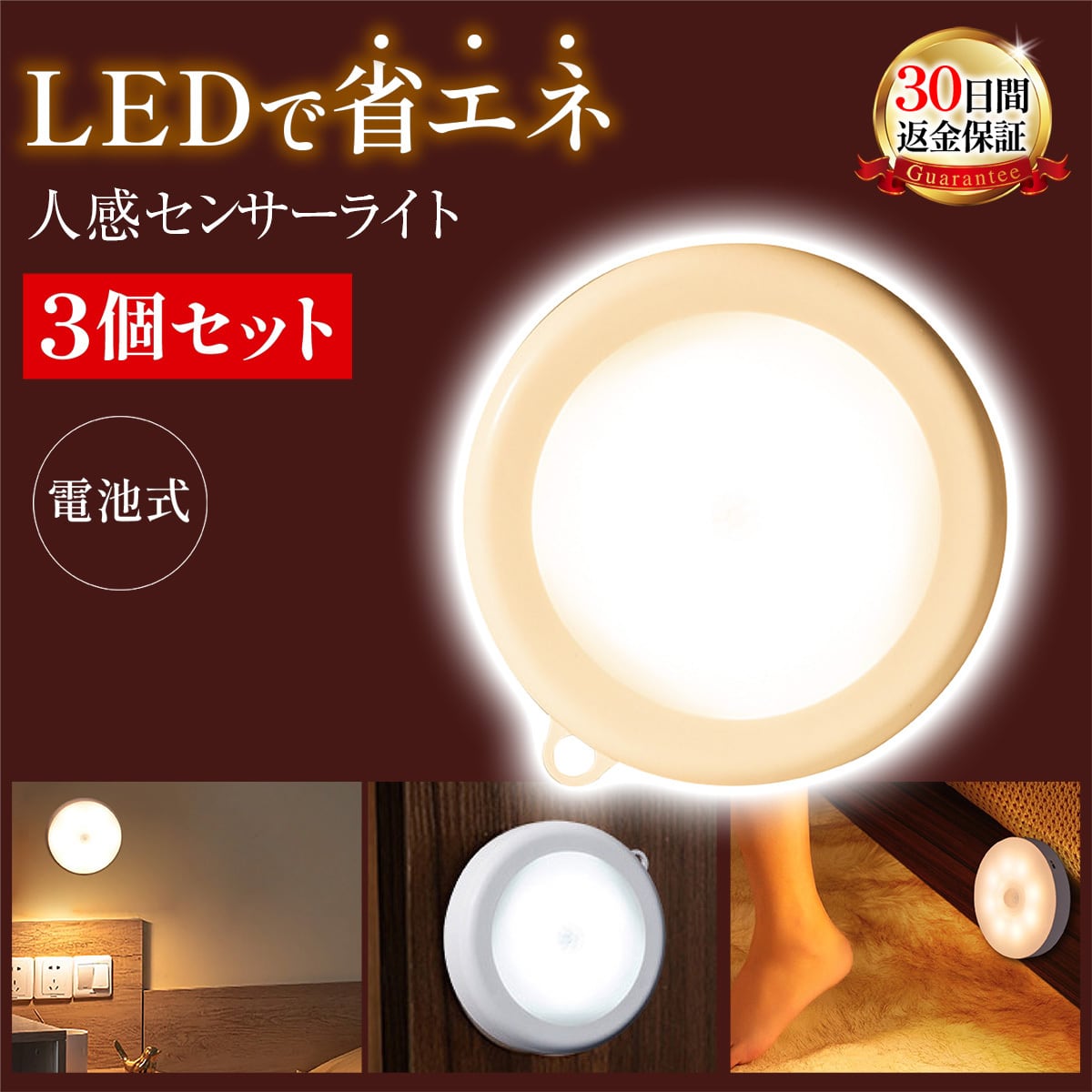 【ベルキューナ】 センサーライト 3個セット ホワイト オレンジ 人感センサーライト LEDライト 非常灯