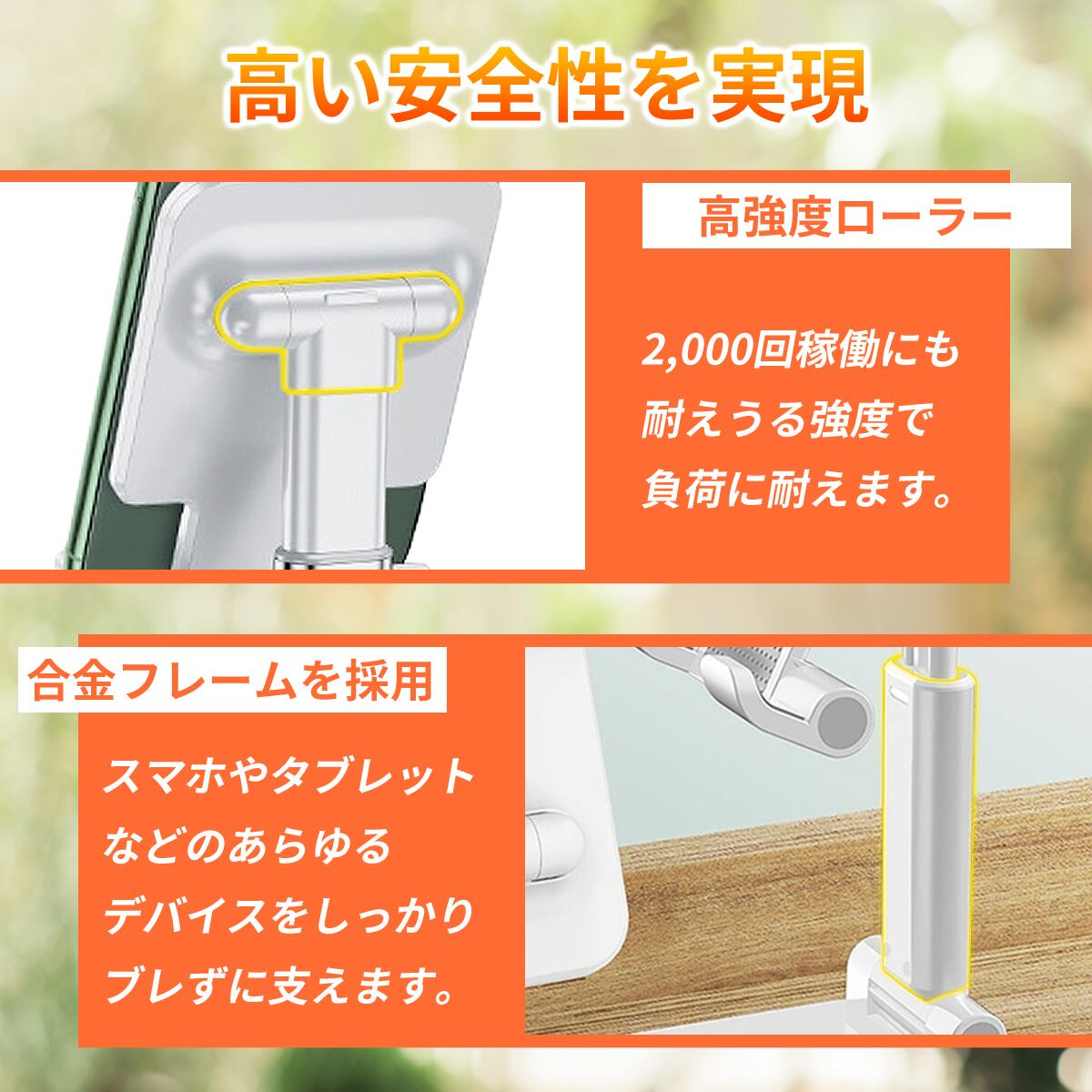落下を防ぎ、スマホやタブレットを支える安定感。