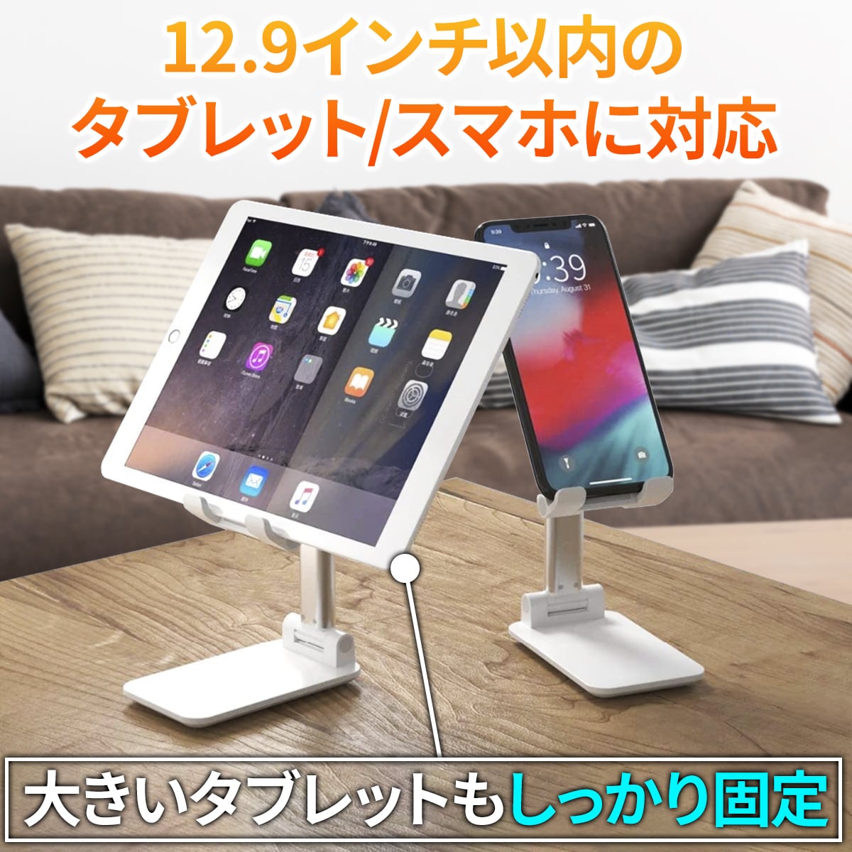 12.9インチ以内のタブレット スマホなどの端末に対応。