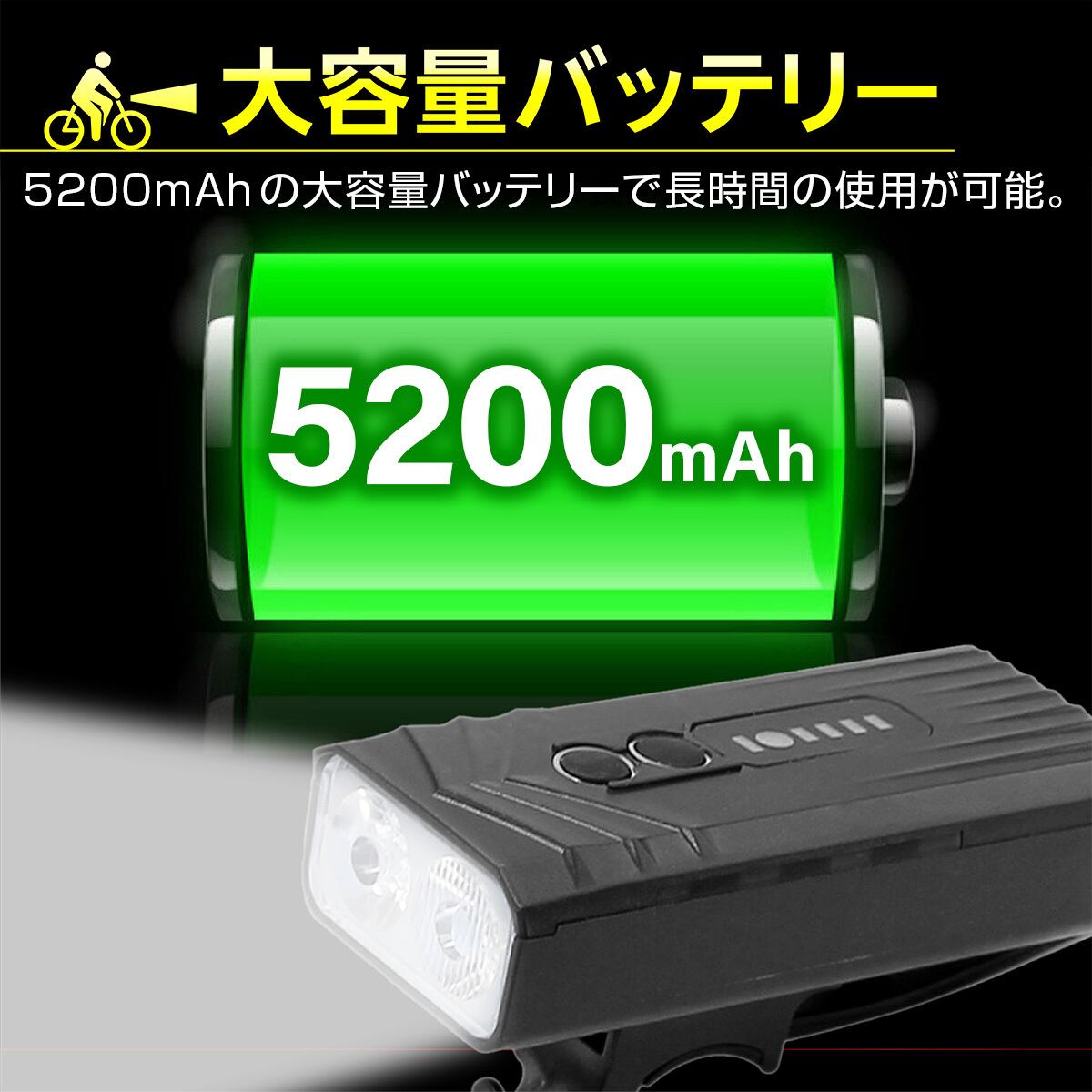 ・5200mAhで長時間使用が可能に。